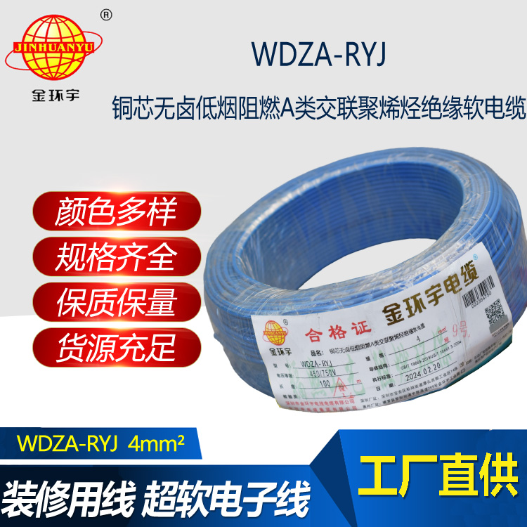WDZA-RYJ低煙無鹵阻燃電線具有高阻燃、耐高溫、低煙低毒的良好性能,適用于額定電壓450/750V及以下耐熱105℃或125℃固定布線和電力、電子設(shè)備內(nèi)部連接線,如家庭裝修、消防設(shè)備、緊急電源插座等供電。