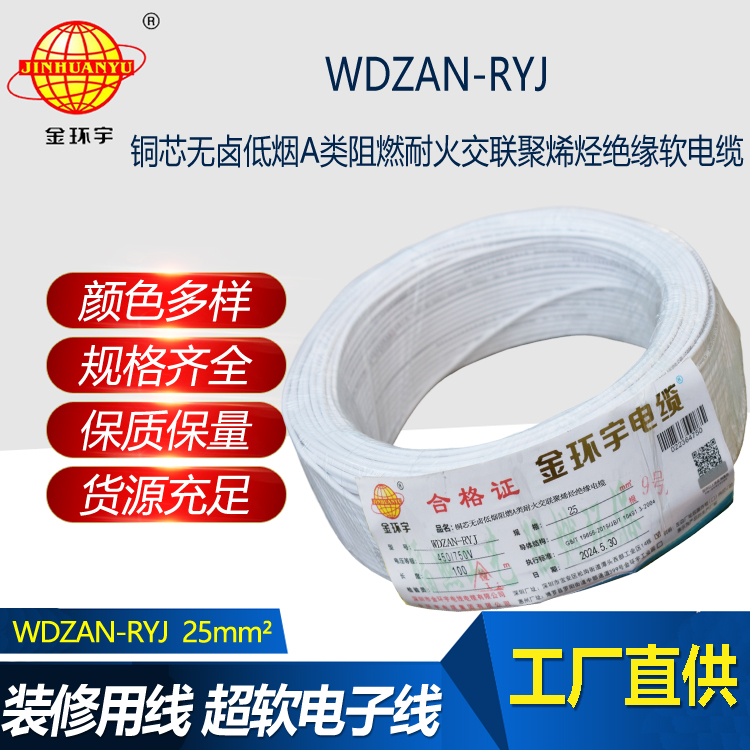 WDZAN-RYJ低煙無鹵阻燃A類耐火軟電線,是您安全電氣布線的理想選擇。采用銅芯,配以A類耐火交聯聚烯烴絕緣,適用于450/750V及以下的固定布線和各類電力、...
