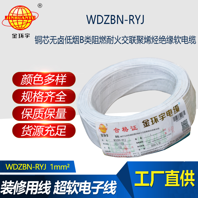 WDZBN-RYJ電纜:全稱B級阻燃耐火低煙無鹵交聯聚烯烴絕緣布電線,執行標準GB/T19666-2005。