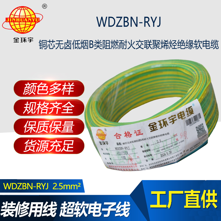 WDZBN-RYJ電纜:全稱B級阻燃耐火低煙無鹵交聯聚烯烴絕緣布電線,執行標準GB/T19666-2005。