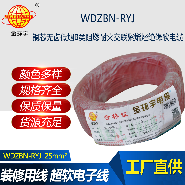 WDZBN-RYJ電纜:全稱B級阻燃耐火低煙無鹵交聯(lián)聚烯烴絕緣布電線,執(zhí)行標準GB/T19666-2005。