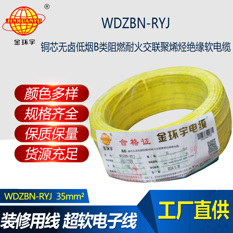WDZBN-RYJ電纜:全稱B級阻燃耐火低煙無鹵交聯(lián)聚烯烴絕緣布電線,執(zhí)行標準GB/T19666-2005。