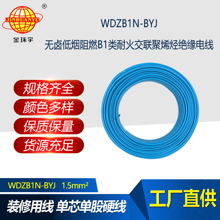金環宇電線 WDZB1N-BYJ 1.5平方 阻燃b1級耐火電線 低煙無鹵電線