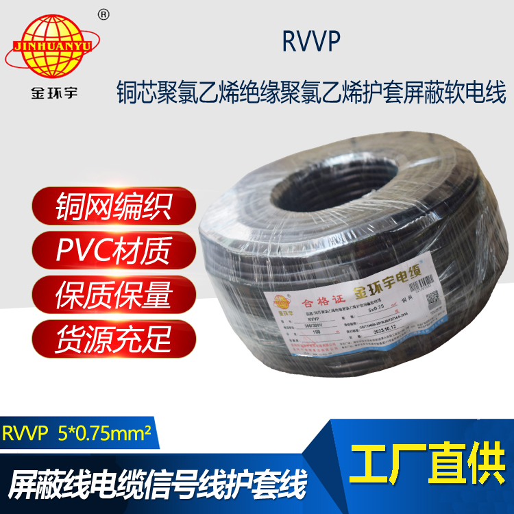 金環宇電纜 RVVP 5x0.75平方 rvvp軟電纜 銅網屏蔽軟電纜