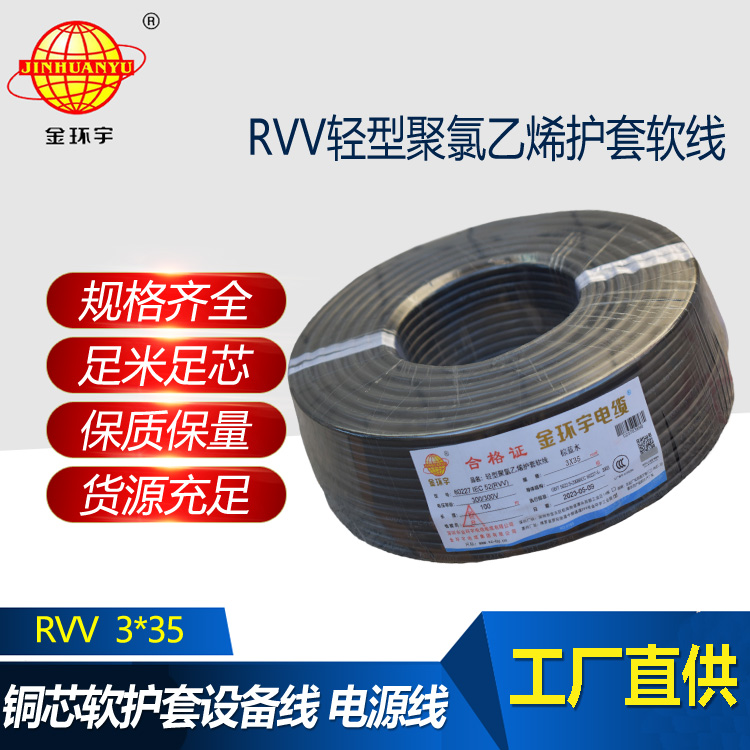 金環宇電纜 rvv軟護套電纜RVV 3X35平方 深圳rvv電纜