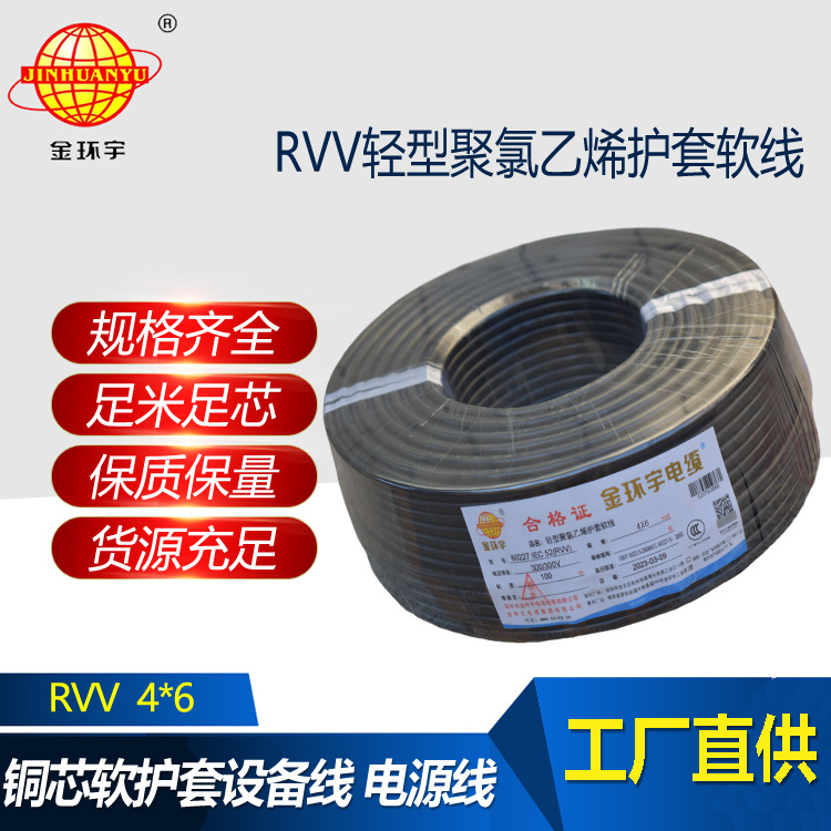 金環宇電纜 RVV 4X6平方 深圳rvv線纜 護套軟電纜