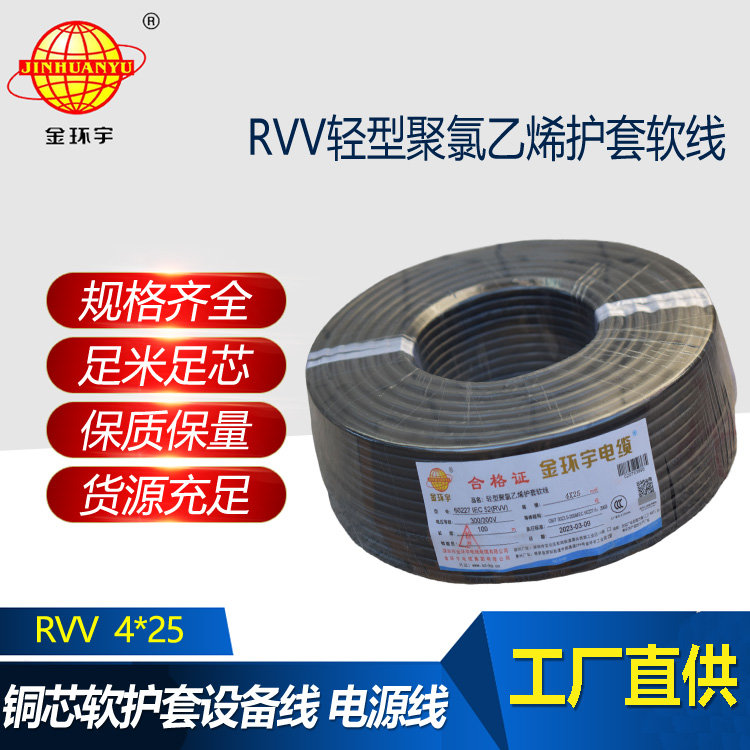 金環宇電纜 RVV 4X25平方 軟護套電纜線 rvv銅芯電纜
