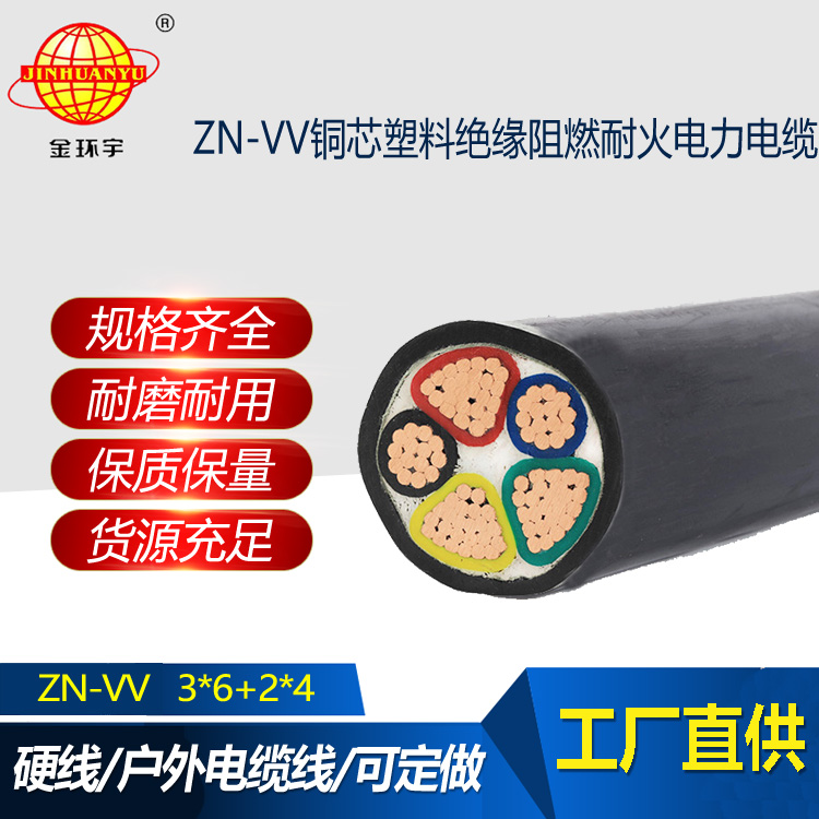 金環宇電纜 vv電纜廠家ZN-VV 3X6+2X4平方阻燃耐火電纜