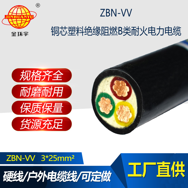 金環宇電纜 阻燃b類耐火電纜ZBN-VV 3X25平方 低壓電力電纜vv