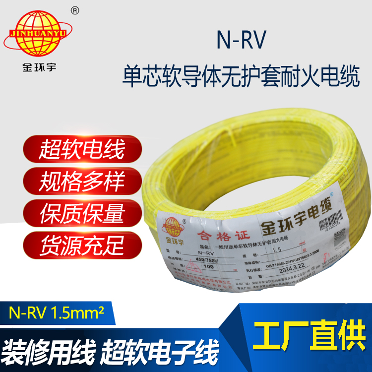 N-RV電線,全稱耐火銅芯聚氯乙烯絕緣連接軟電線。使用溫度可達到70℃,用作儀器和設備的內部接線。銅芯軟線主要采用在需柔性連接的可動部位。所有型號電纜電線的長期允許工作溫度不應超過70℃。