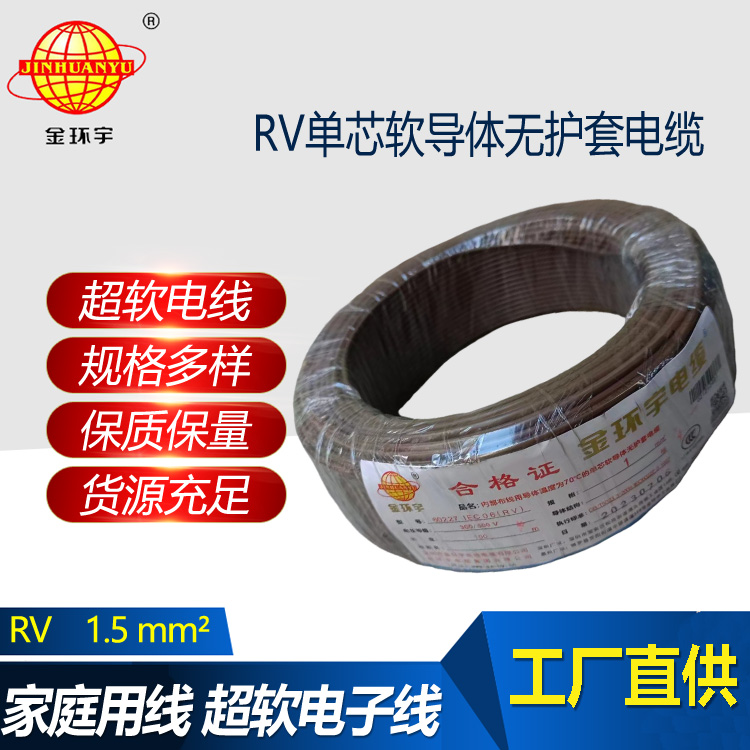 RV-一般用途單芯軟導體無護套電纜,適用于交流電壓450/750及以下動力裝置、日用電器、儀表及電信設備的電纜電線。本產品采用軟電線材質,適合裝修用線和家裝用線。無護套設計,更...