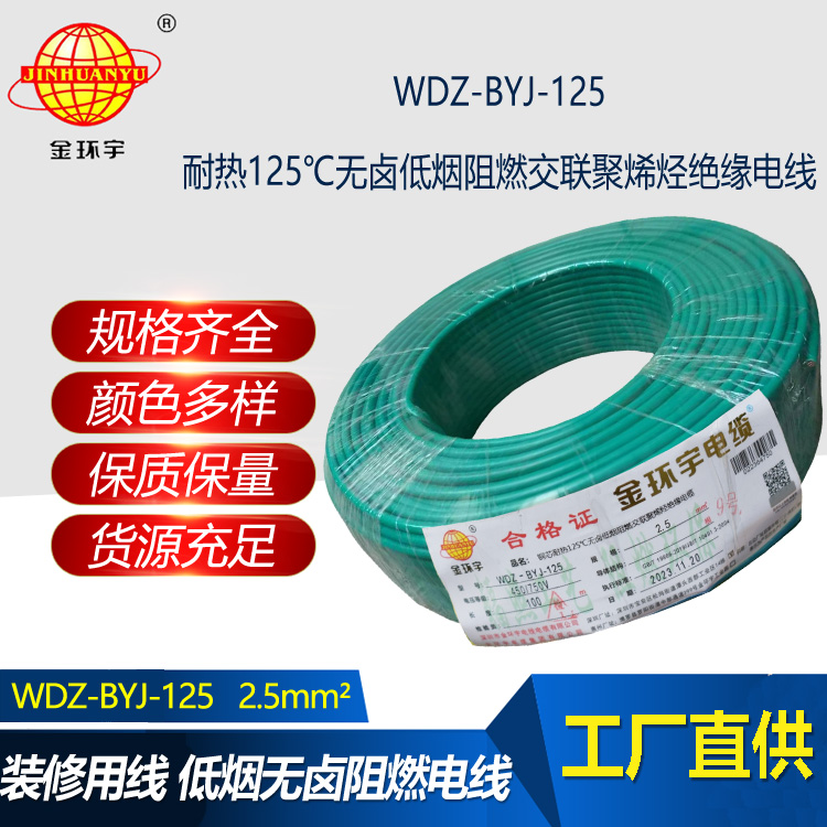WDZ-BYJ-125:即為低煙無鹵阻燃電線,是指電線的絕緣層材料鹵素物質,在燃燒的情況下,不釋放含鹵氣體,煙霧濃度低,參照標準為JB/T 10491-2004,型號有WDZA-BYJ、WDZB-BYJ、WDZC-BYJ等,