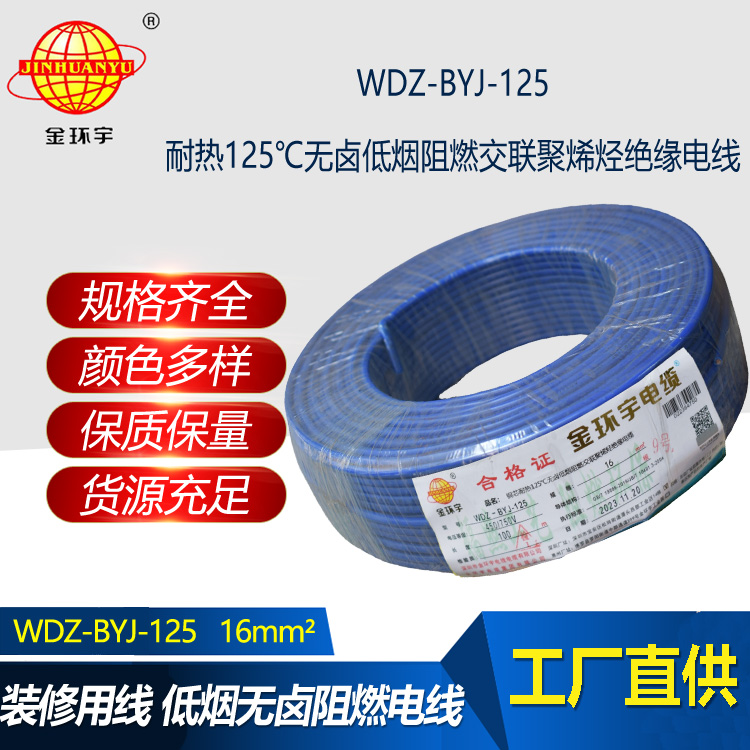 WDZ-BYJ-125:即為低煙無鹵阻燃電線,是指電線的絕緣層材料鹵素物質(zhì),在燃燒的情況下,不釋放含鹵氣體,煙霧濃度低,參照標(biāo)準(zhǔn)為JB/T 10491-2004,型號有WDZA-BYJ、WDZB-BYJ、WDZC-BYJ等,