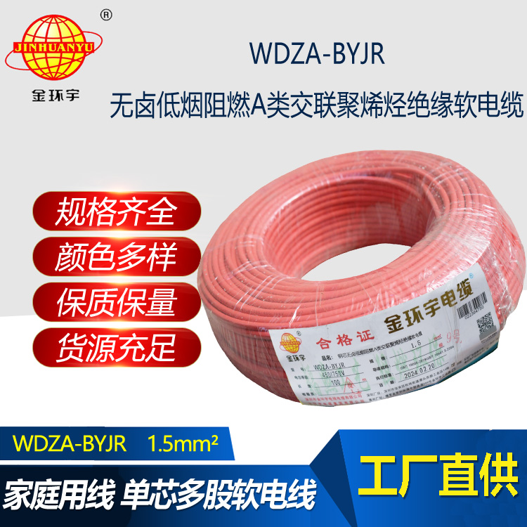 WDZA-BYJR指低煙無鹵阻燃聚烯烴護套,交聯聚乙烯絕緣軟電線。WDZA分別是無鹵、低煙、A級阻燃、聚烯烴,B指電線,YJ是交聯聚乙烯絕緣,R是軟。