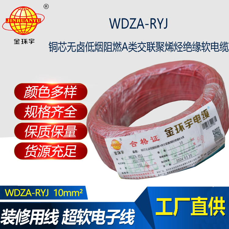 WDZA-RYJ低煙無鹵阻燃電線具有高阻燃、耐高溫、低煙低毒的良好性能,適用于額定電壓450/750V及以下耐熱105℃或125℃固定布線和電力、電子設備內部連接線,如家庭裝修、消防設備、緊急電源插座等供電。