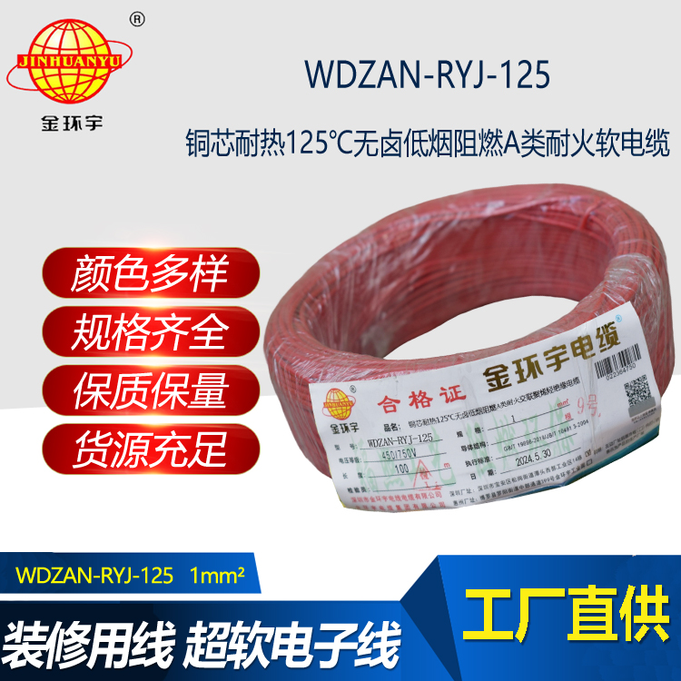 WDZAN-RYJ-125耐熱125℃銅芯低煙無鹵軟阻燃a類耐火軟電線