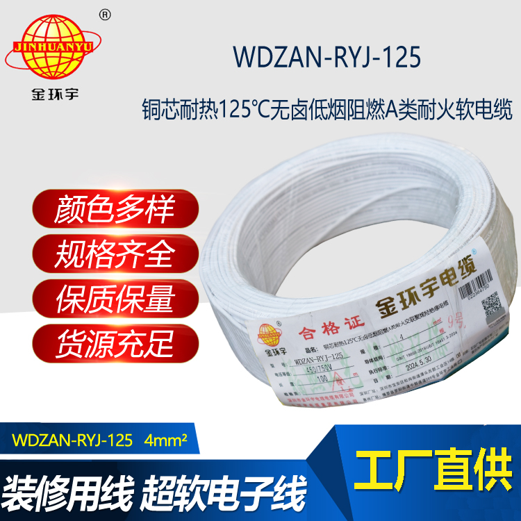 WDZAN-RYJ-125耐熱125℃銅芯低煙無鹵軟阻燃a類耐火軟電線,是一款高品質電線,采用銅芯耐熱材料制造,具有無鹵低煙、阻燃耐火性能優良,電氣性能穩定和安全可靠的特點。適用于額定電壓450/750V及以下的固定布線和電力、電子設備內部連接線,例如家庭裝修、消防設備、緊急電源插座等用電場合。