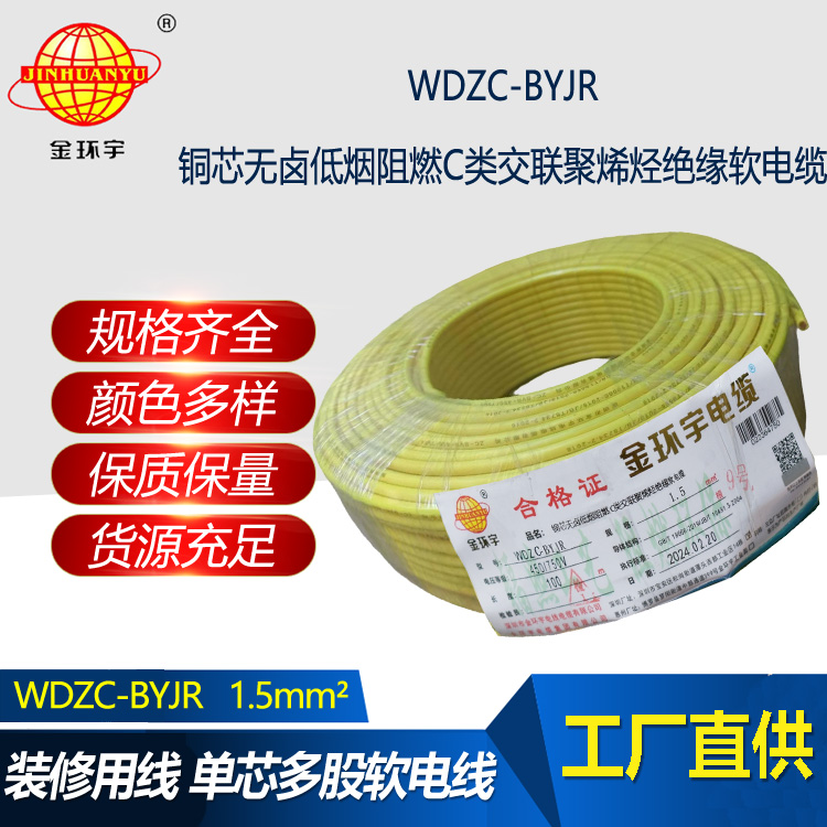 WDZC-BYJR指低煙無鹵阻燃聚烯烴護套,交聯聚乙烯絕緣軟電線。WDZC分別是無鹵、低煙、阻燃、聚烯烴,B指電線,YJ是交聯聚乙烯絕緣,R是軟。