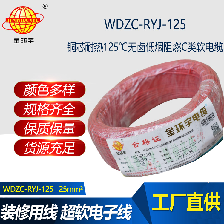 WDZC-RYJ-125低煙無鹵C級阻燃電線是一種高品質的銅芯無鹵低煙阻燃C類交聯聚稀烴絕緣軟電纜。該電線廣泛應用于工業配電領域,在450/750V以下的電器、儀表、電子設備和自動化裝...