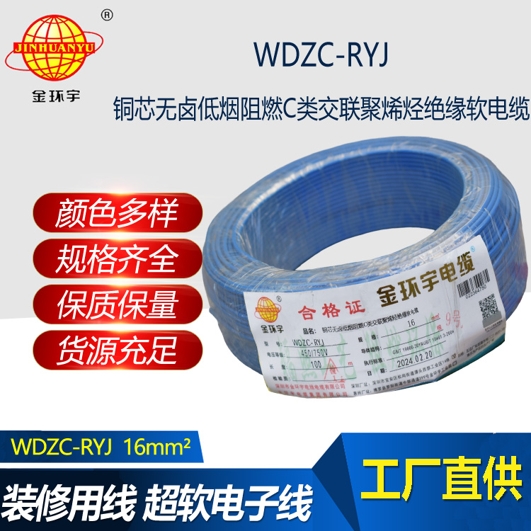 WDZC-RYJ低煙無鹵阻燃電線具有高阻燃、耐高溫、低煙低毒的良好性能,適用于額定電壓450/750V及以下耐熱105℃或125℃固定布線和電力、電子設備內部連接線,如家庭裝修、消防設備、緊急電源插座等供電。