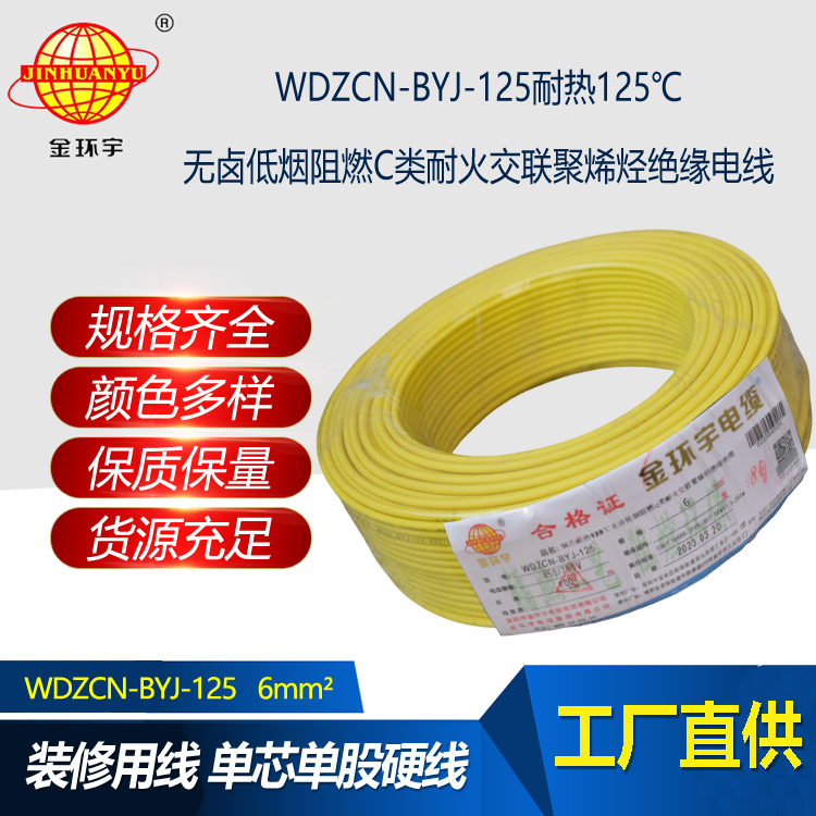 WDZCN-BYJ-125:即為銅芯耐熱125℃無鹵低煙阻燃C類耐火交聯聚烯烴絕緣電線,是指電線的絕緣層材料鹵素物質,在燃燒的情況下,不釋放含鹵氣體,煙霧濃度低,參照標準為JB/T 10491-2004,型號有WDZAN-BYJ-125、WDZBN-BYJ-125、WDZCN-BYJ-125等,