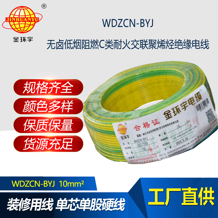 WDZCN-BYJ:即為銅芯無鹵低煙交聯聚氯乙烯絕緣阻燃c類耐火電線,是指電線的絕緣層材料鹵素物質,在燃燒的情況下,不釋放含鹵氣體,煙霧濃度低,參照標準為JB/T 10491-2004,型號有WDZAN-BYJ、WDZBN-BYJ、WDZCN-BYJ等,