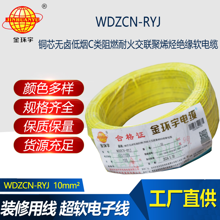 WDZCN-RYJ銅芯低煙無鹵阻燃c類阻燃耐火交聯聚烯烴絕緣軟電線,專為固定布線及電力、電子設備內部連接而設計。該電線符合額定電壓450/750V以下的需求,長期工作溫度可達105℃或125℃,展現出耐火性和低煙無鹵的特點。