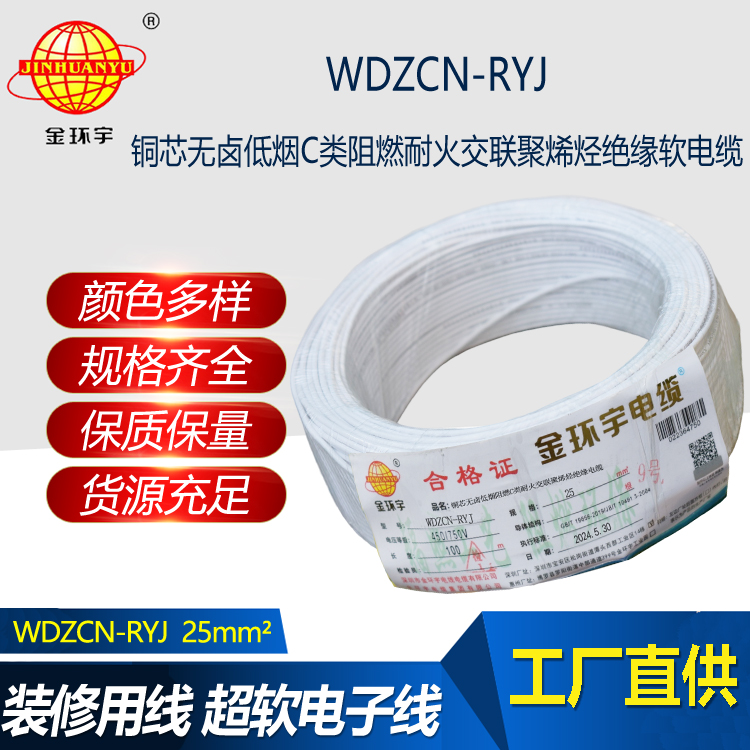 WDZCN-RYJ電纜:全稱C級阻燃耐火低煙無鹵交聯聚烯烴絕緣布電線,執行標準GB/T19666-2005。