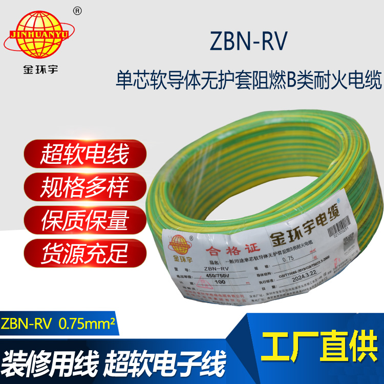 金環宇電線電纜 b級阻燃耐火電線ZBN-RV 0.75平方 深圳rv電線