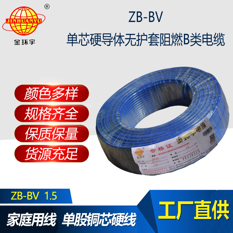 金環宇電線 阻燃電線 ZB-BV 1.5 家裝照明線 bv單芯電線