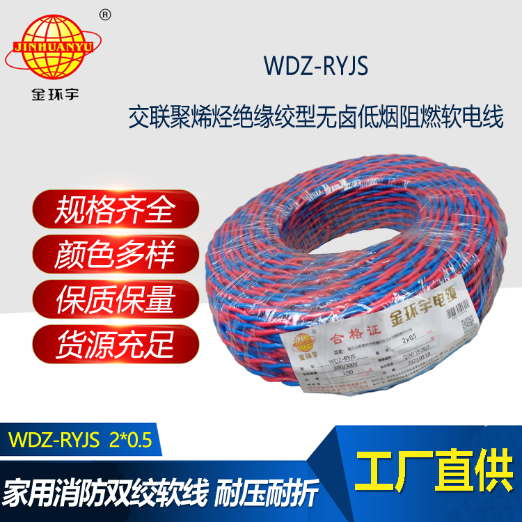 WDZ-RYJS :是銅芯低煙無鹵阻燃交聯聚烯烴絕緣絞型連接軟線。是消防用阻燃聚烯烴絕緣連接軟線是參照GB/T5023-2008等標準制訂的,其阻燃特性符合GB/Tl9666類的要求。