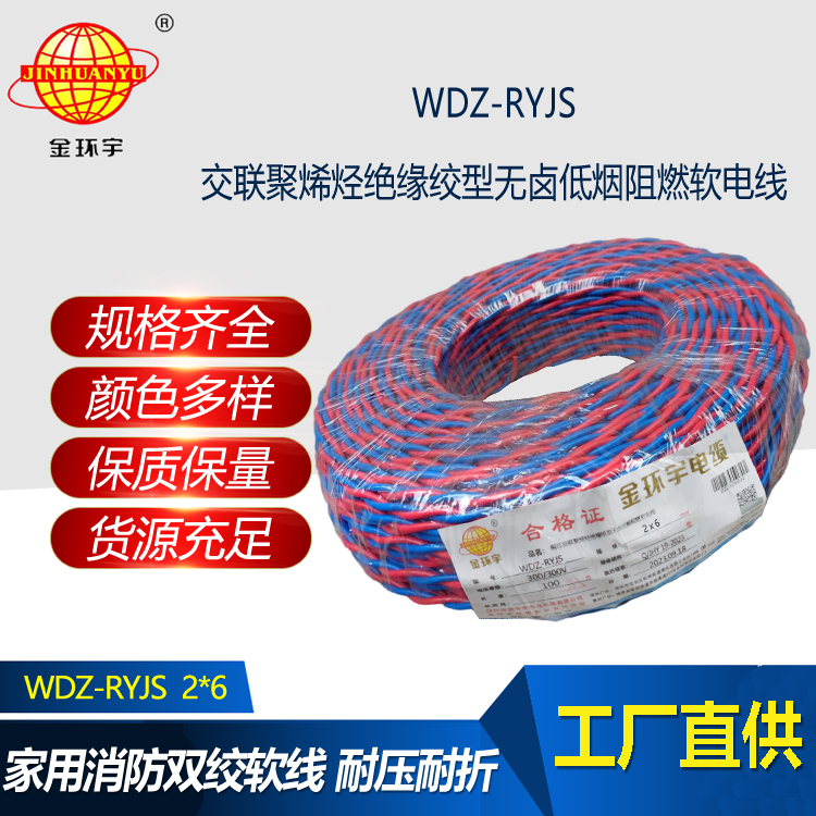 WDZ-RYJS :是銅芯低煙無鹵阻燃交聯聚烯烴絕緣絞型連接軟線。是消防用阻燃聚烯烴絕緣連接軟線是參照GB/T5023-2008等標準制訂的,其阻燃特性符合GB/Tl9666類的要求。