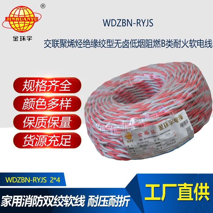尊敬的客戶,我們自豪地推薦金環宇的產品——WDZBN-RYJS低煙無鹵阻燃耐火電纜。該電纜是一款銅芯低煙無鹵B類阻燃耐火交聯聚烯烴絕緣絞型連接線,可廣泛用于電廠、高層建筑等防火系統,特別適用于應急電源與戶內消防設備的供電線路等。