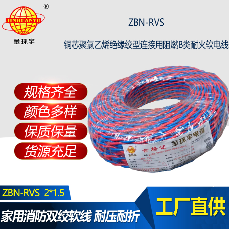 “ZBN-RVS”表示阻燃耐火型聚氯乙烯絕緣雙絞線。RVS--300/300V-聚氯乙烯絕緣絞型連接用軟電線。ZB是指阻燃B級,N-耐火型的。