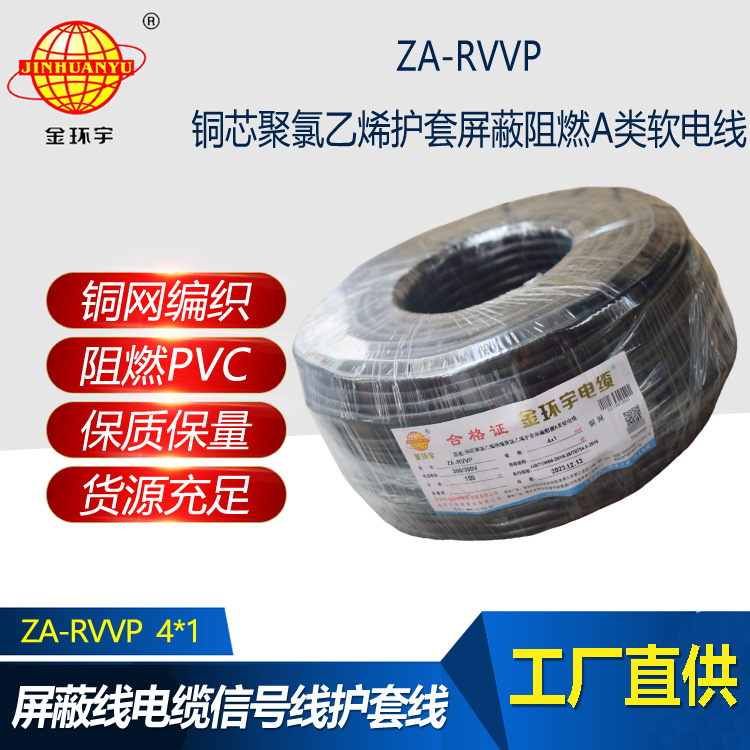 金環宇電纜 ZA-RVVP 4X1平方 a級阻燃銅編織屏蔽軟電纜