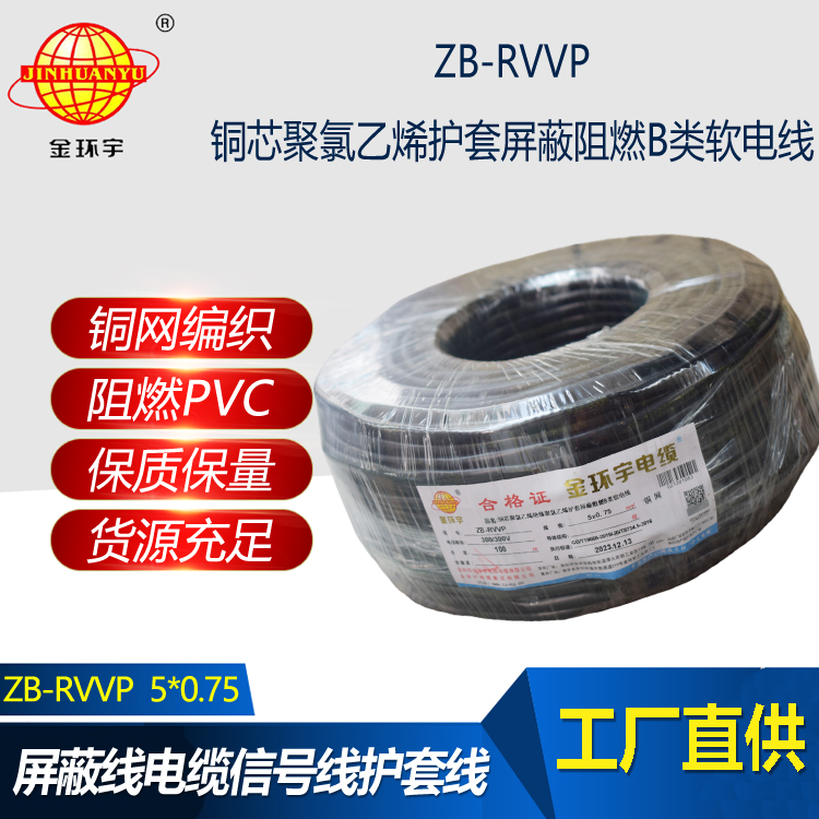 金環宇電纜 ZB-RVVP 5X0.75平方 阻燃rvvp屏蔽五芯電纜
