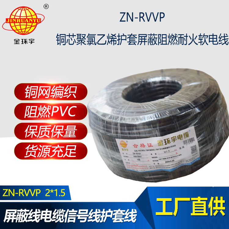 金環宇電線電纜 雙芯屏蔽阻燃耐火軟電纜ZN-RVVP 2X1.5平方 rvvp電纜