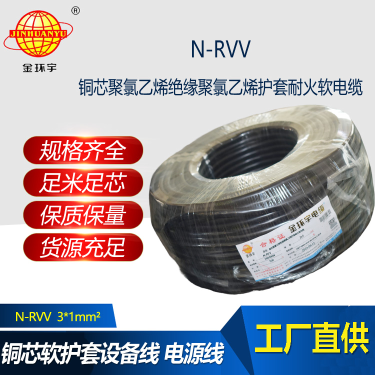 N-RVV是指銅芯耐火聚氯乙烯絕緣聚氯乙烯護套軟電纜。N表示耐火;RVV電纜是弱電系統常用的電纜,其芯線根數不定,兩根或以上,外面有PVC護套,芯線之間的排列沒有特別要求。 字母R代表軟線字母V代表絕緣體聚氯乙烯(PVC)