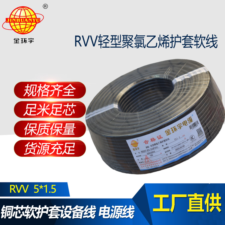 金環宇電纜 RVV5X1.5平方 深圳rvv電纜廠家 軟護套電源線