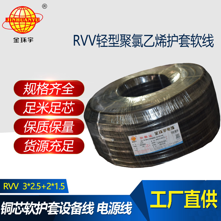 金環宇電纜 rvv軟電纜RVV 3X2.5+2X1.5平方 護套電纜線