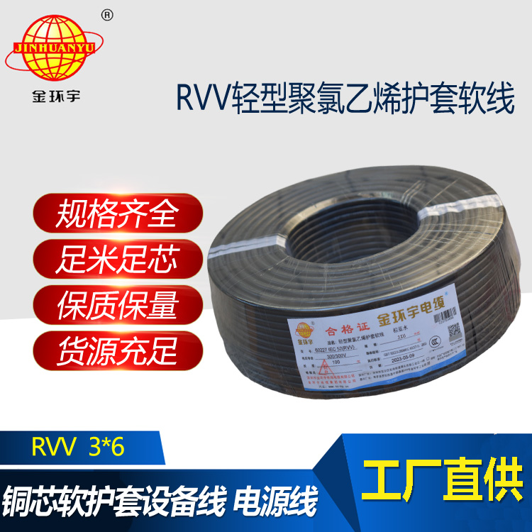 金環宇電纜 rvv電纜RVV 3X6平方 三芯軟護套電源線