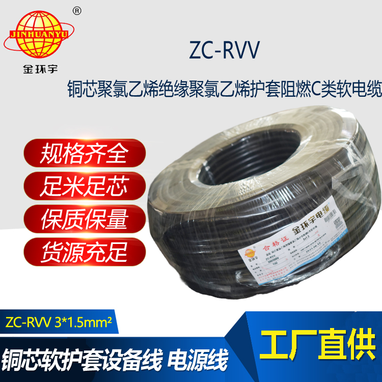 金環宇電線電纜 深圳rvv電纜報價ZC-RVV3X1.5棕藍地 阻燃電纜