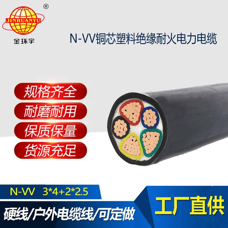 金環宇電線電纜 低壓電力電纜N-VV 3X4+2X2.5平方三相五線耐火電纜