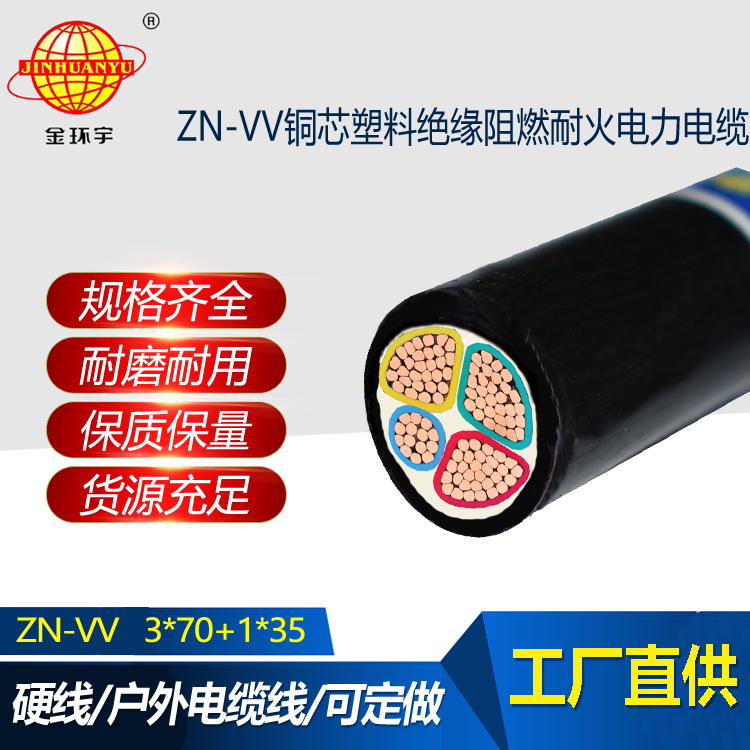 金環宇電纜 阻燃耐火電纜價格ZN-VV 3X70+1X35平方 電纜vv