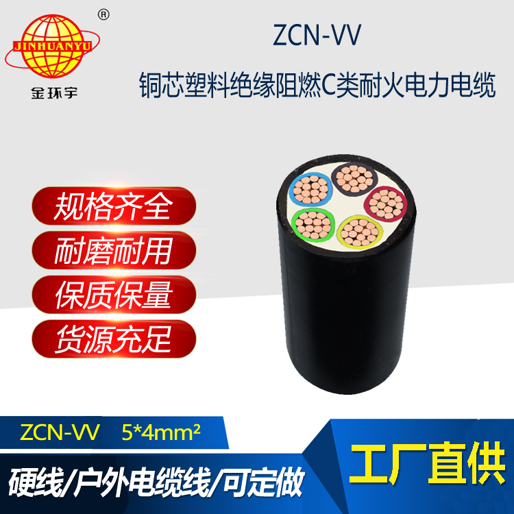 金環宇電纜 vv電力電纜 c級阻燃耐火電纜 ZCN-VV 5X4平方