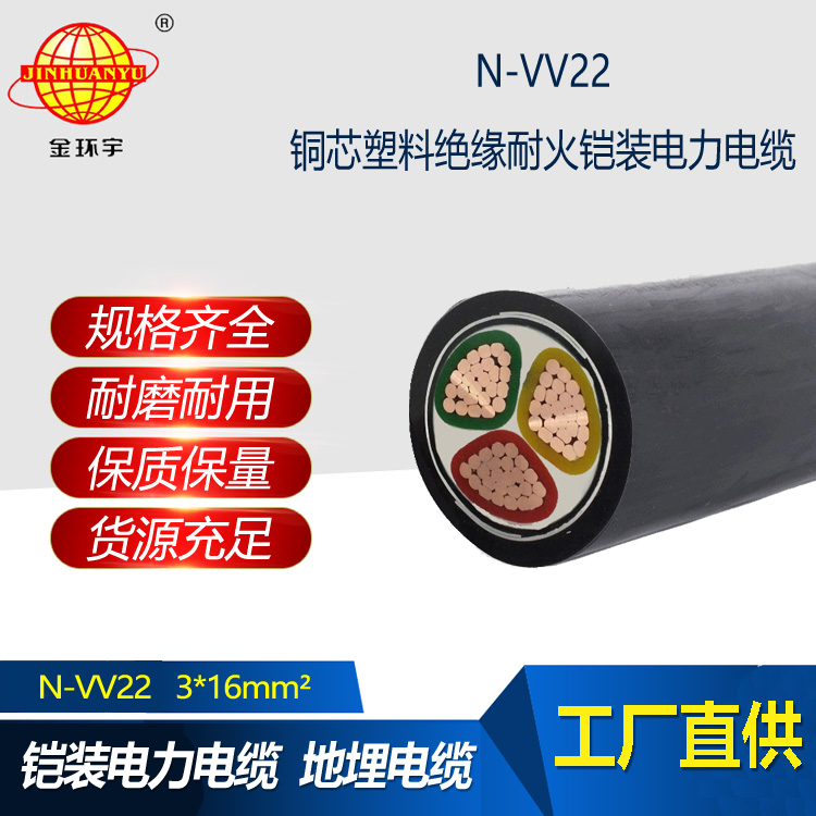 金環宇電線電纜 耐火鎧裝vv22電纜型號N-VV22-3X16平方