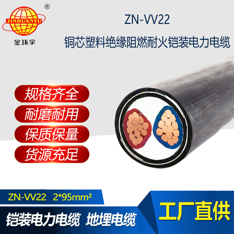 金環宇電線電纜 阻燃耐火鎧裝電力電纜ZN-VV22-2X95平方 vv22電線電纜