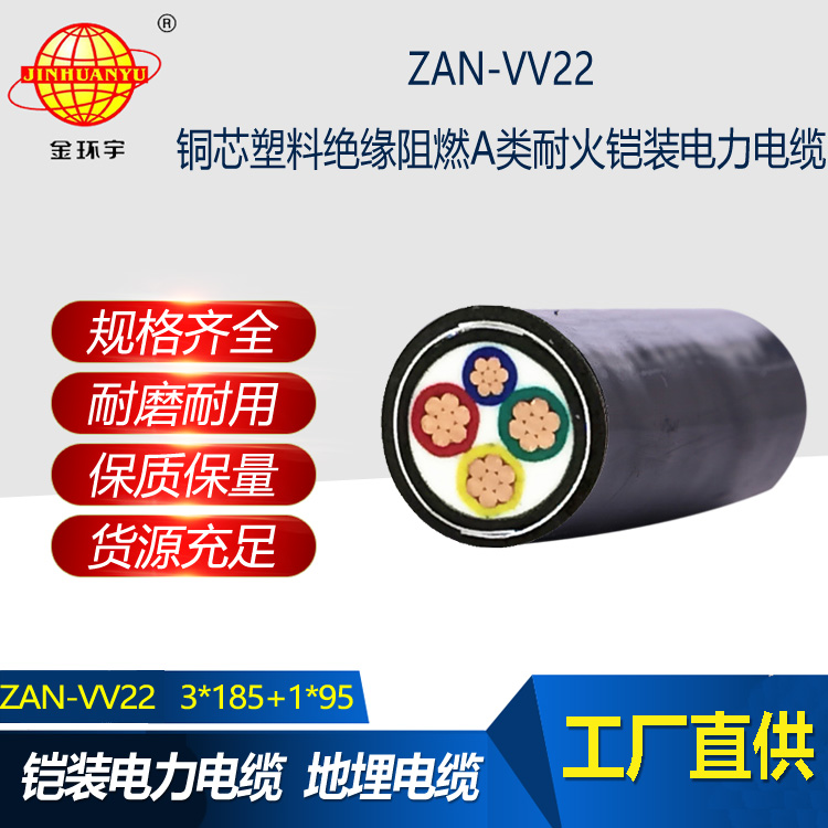 金環宇推出ZAN-VV22阻燃A類耐火鎧裝電力電纜,為您在電力輸配電工程中提供安全、可靠的解決方案。該電纜采用銅芯,配備聚氯乙烯絕緣...