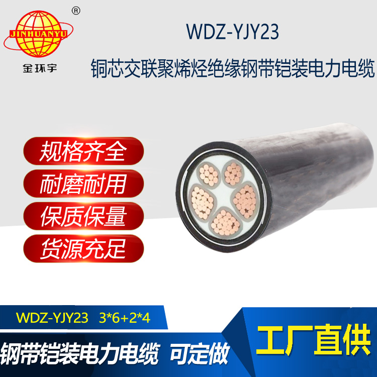 金環宇電線電纜 低煙無鹵阻燃電纜WDZ-YJY23-3X6+2X4平方 鎧裝電線電纜