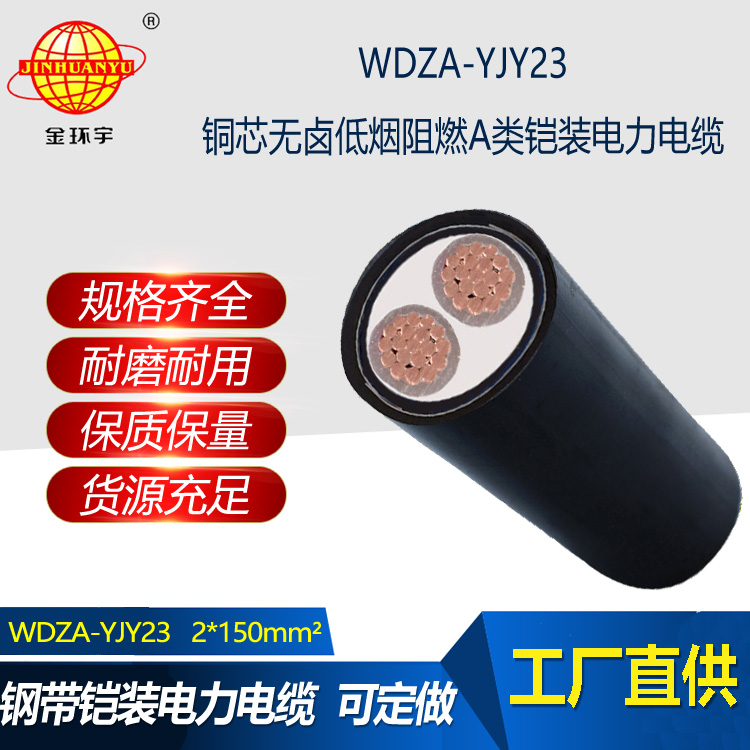 金環宇電線電纜 鎧裝電纜WDZA-YJY23-2X150平方 低煙無鹵鋼帶鎧裝阻燃電纜